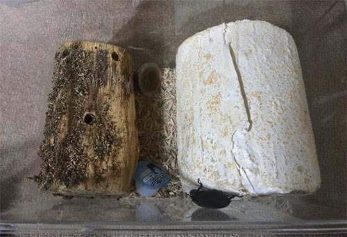本当は事前に菌糸ビンを用意しておいて、幼虫掘り起こしたらすぐ2本目に移動できればいいんだけど1本目と違って性別で菌糸ビンのサイズが変わってくるのでそうもいかず、しょうがないので、