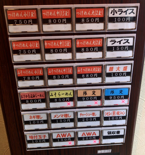 席は満席、6人位かな?座れる待合席も満席で入口入ってすぐの食券機の前に立って待つことに。次のお客さんが来たら外に並ぶ感じだなーと思いつつも、溢れない程度にお客さんが続いてました。