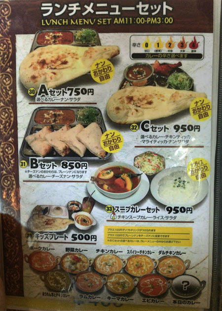 カレーメニュー 辛さは5段階から選べます