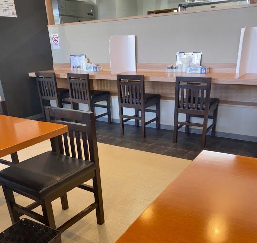 カウンター、テーブル席共にゆとりがあって店内は広々としています。