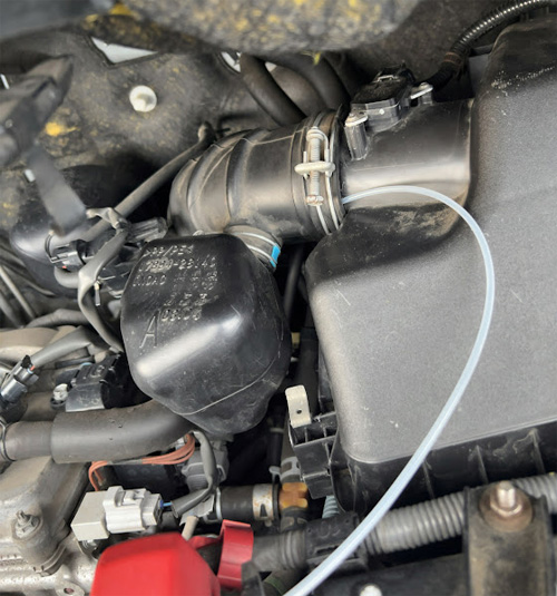 今回はエアクリボックス直後のホースの継ぎ目からノズルを入れました。