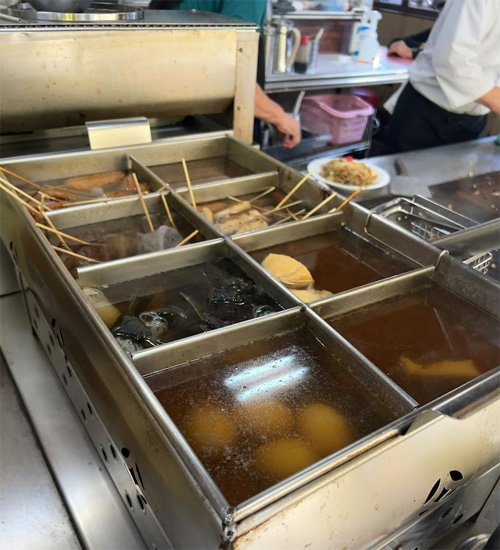 おでんはセルフで持っていくスタイルで大根などの人気の具材は既に売り切れでした。