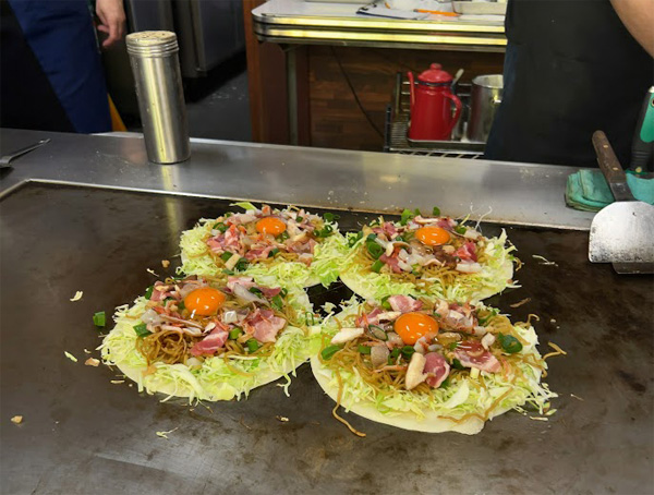 何を食べるか迷いましたが、まずはシンプルな富士宮やきそばの大盛りを家族でシェアします。