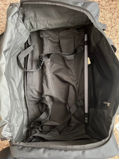 キャリーの持ちての部分に竹刀袋をぶっ刺せるタイプの防具袋もありますが、この防具袋はできるともできないとも説明がありませんでした。