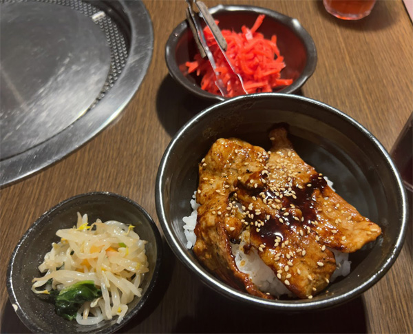 ただブログのネタも欲しいところではあるので断腸の思いで青葉を諦め、前から気になっていた焼肉大手門の豚丼を食べに行ってきました。