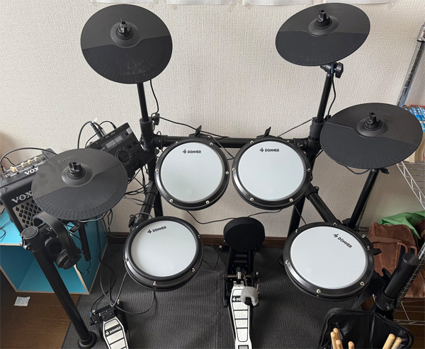 戸建ての2階に設置した電子ドラム。