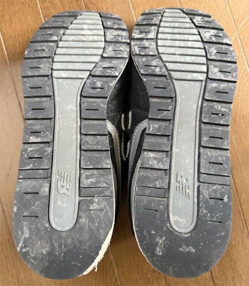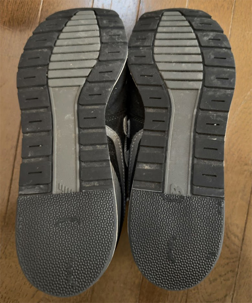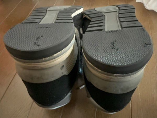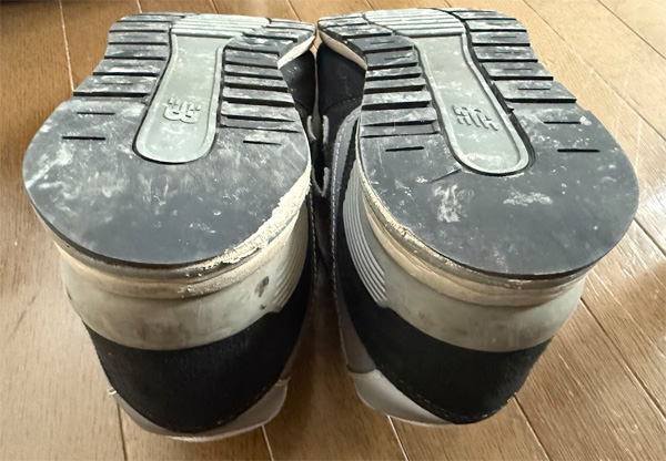 かかとだけはすり減ってソールのゴム通り越して白い部分まで出てしまってる状態。